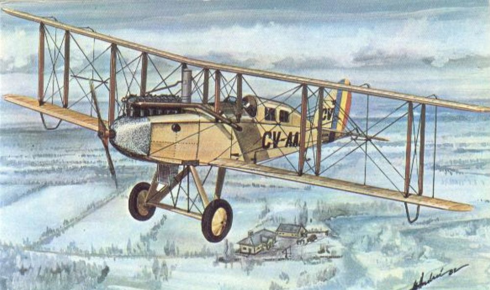Первым гражданским самолетом, выполнявшим рейсы (еще нерегулярные, регулярные начались в 1926 году) в нашу страну, стал De Havilland DH9 — воздушное судно на десять пассажирских мест. Оно летало по маршруту Бухарест-Галаць-Кишинев, чуть более четырехсот километров в воздухе, на преодоление которых требовались примерно три часа, ибо тогдашние самолеты летали не быстро — примерно как ездят современные иномарки, 130-150 километров в час.